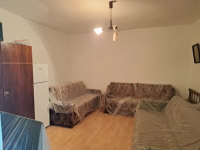 Praktično namešten dnevni boravak u prizemnoj kući – funkcionalan prostor za svakodnevni život, sa prirodnim svetlom.